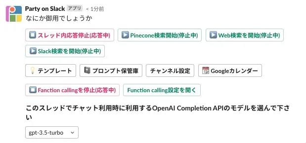生成AIをどのように事業に組み込んでいくのかについて各社検討が進んでいますが、弊社の提供する「Party on Slack」(以下、当アプリ)を用いることによってChatGPTではなくSlack上でChatGPTを利用することが出来るようになります。